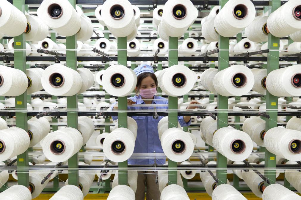 在中國平煤神馬集團簾子布發展公司布機車間,工作人員在檢查絲線生產情況。新華社記者 李嘉南 攝