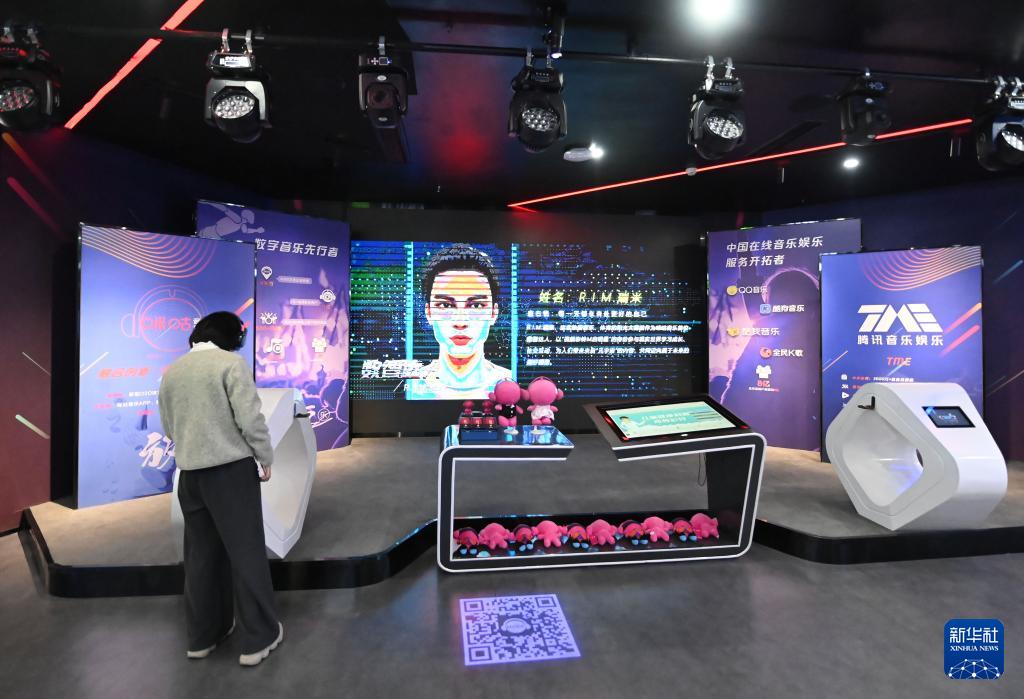 這是11月2日在成都市天府長島數字文創園拍攝的騰訊音樂娛樂展臺。天府長島數字文創園是成都高新區圍繞數字文創產業策劃打造的專業園區。
