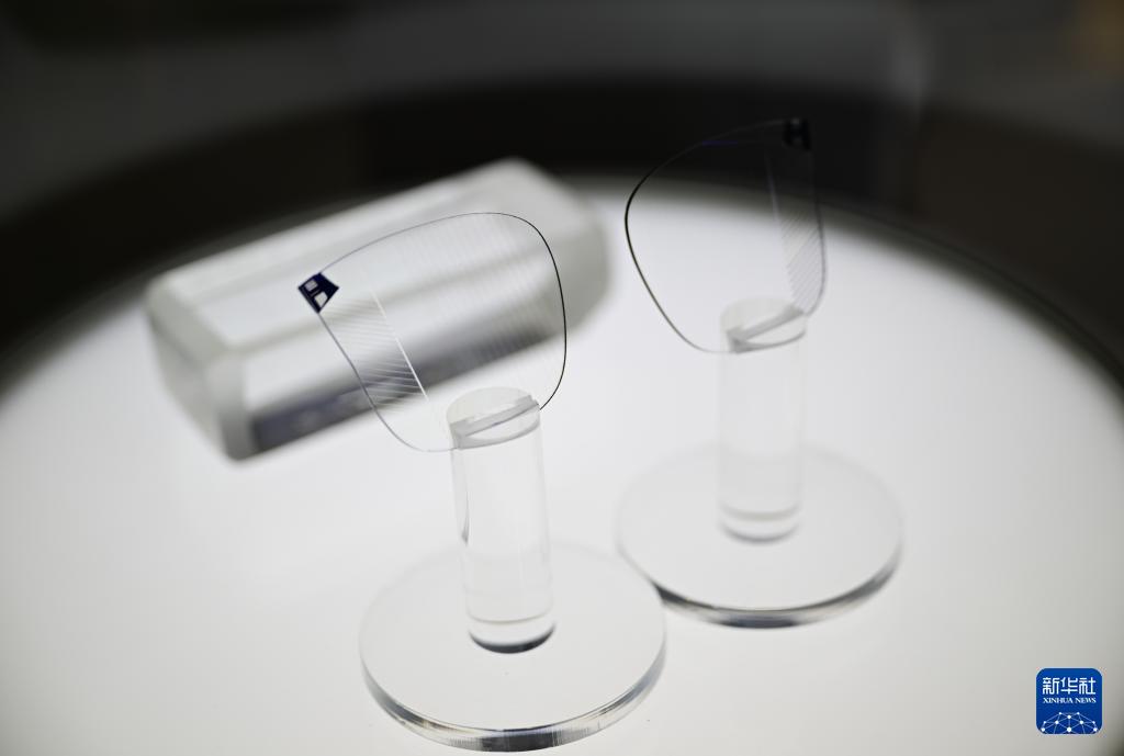 這是11月6日在第八屆進博會技術裝備展區拍攝的一款增強現實眼鏡鏡片。