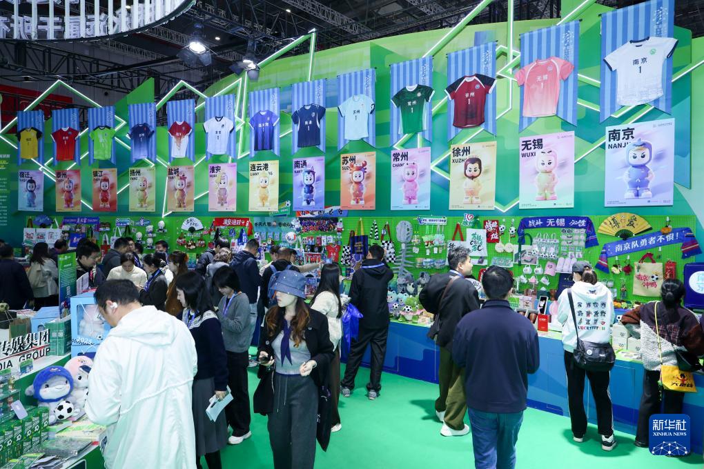 11月20日,觀眾在江蘇展區參觀蘇超文創產品。