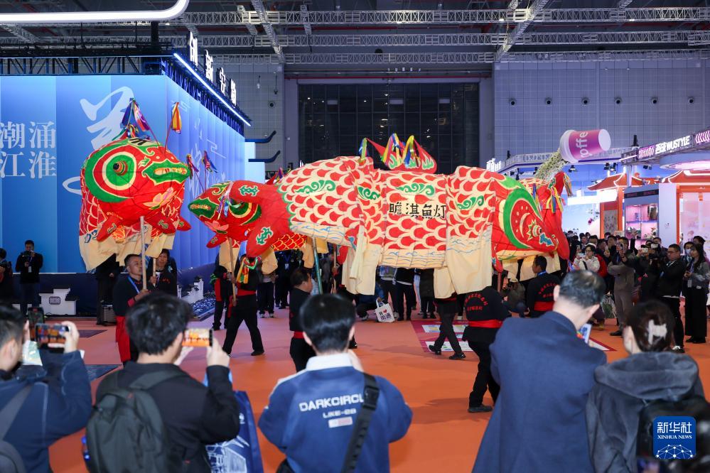 11月20日在安徽展區拍攝的瞻淇魚燈表演。