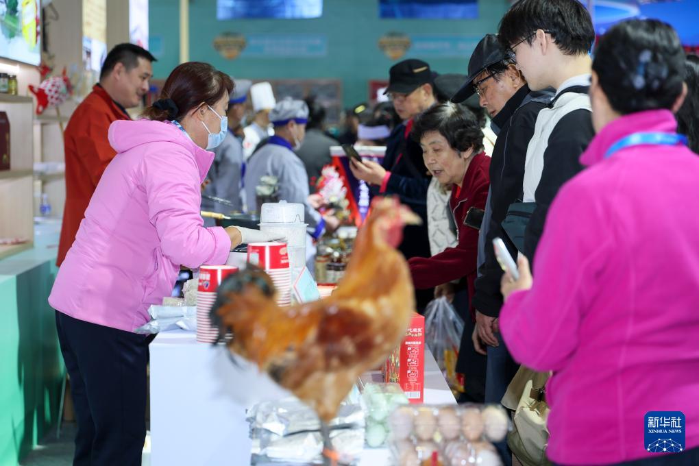 11月20日,觀眾在安徽展區體驗美食。