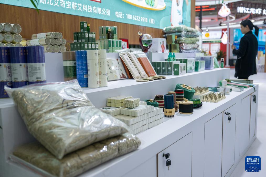 11月29日在2025湖北農(nóng)業(yè)博覽會現(xiàn)場拍攝的蘄艾產(chǎn)品。