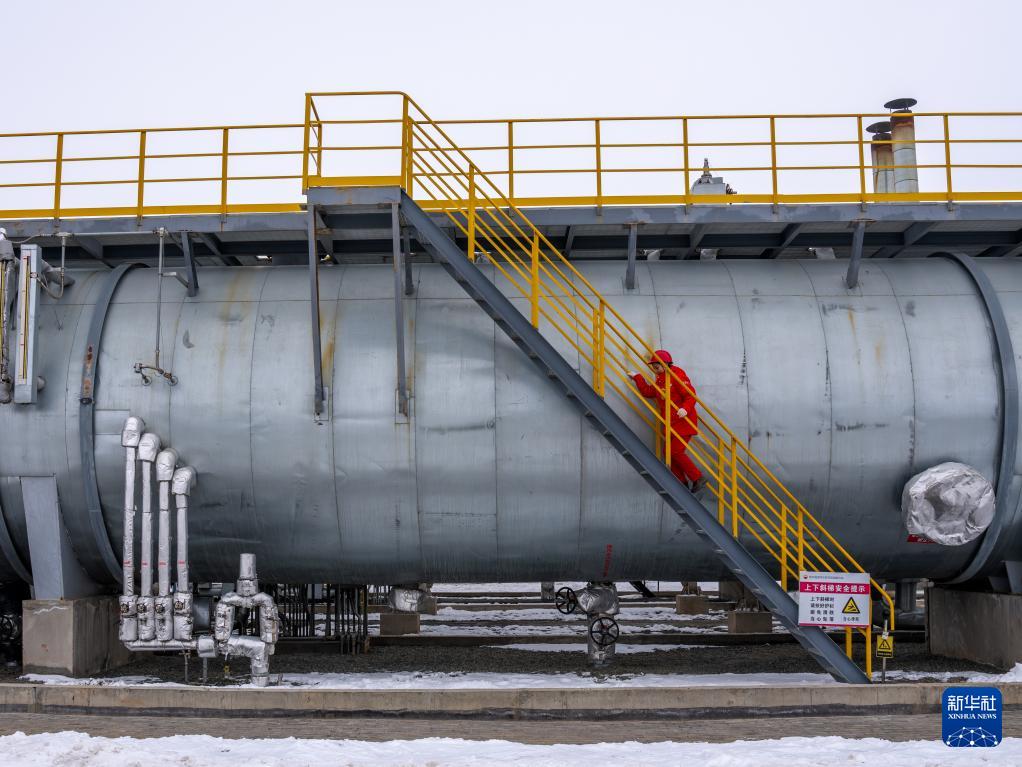 12月8日,在新疆吉木薩爾國家級陸相頁巖油示范區,中國石油新疆油田頁巖油聯合站員工在巡檢設備。