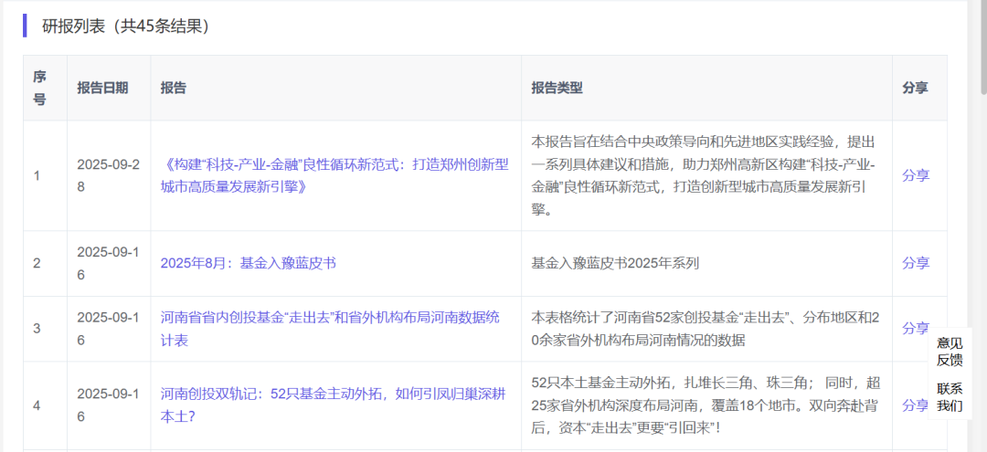 提供專題研究報告,包括基金入豫藍皮書、產業政策研究報告、創投基金投資報告及科創金融研究報告,為決策提供深度洞察與數據支持。